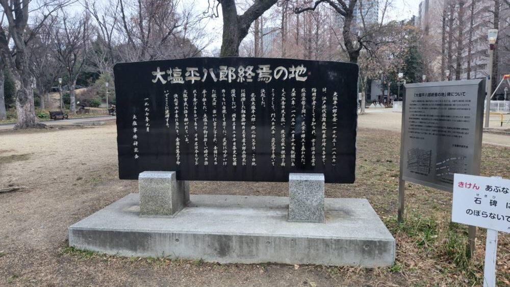 公園の入り口の所には大塩平八郎さんのことが書かれている石碑がありました。
