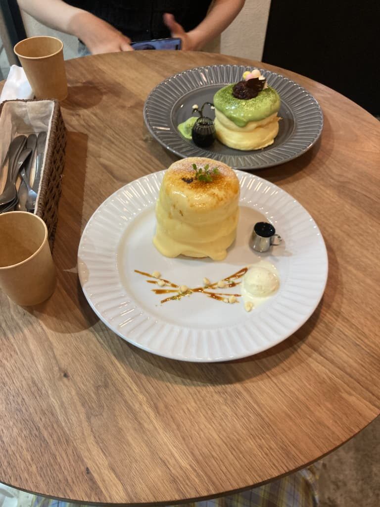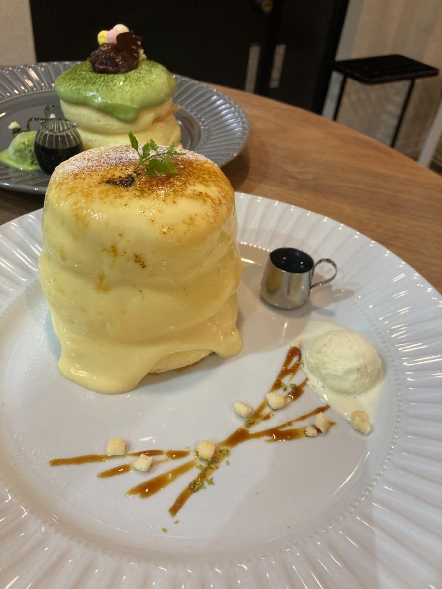 味も・・・とってもおいしい・・・!ふわふわ、しゅわしゅわ溶けちゃう系のパンケーキかと思っていましたが、それと普通のパンケーキの間のような食感で満足感もありました!