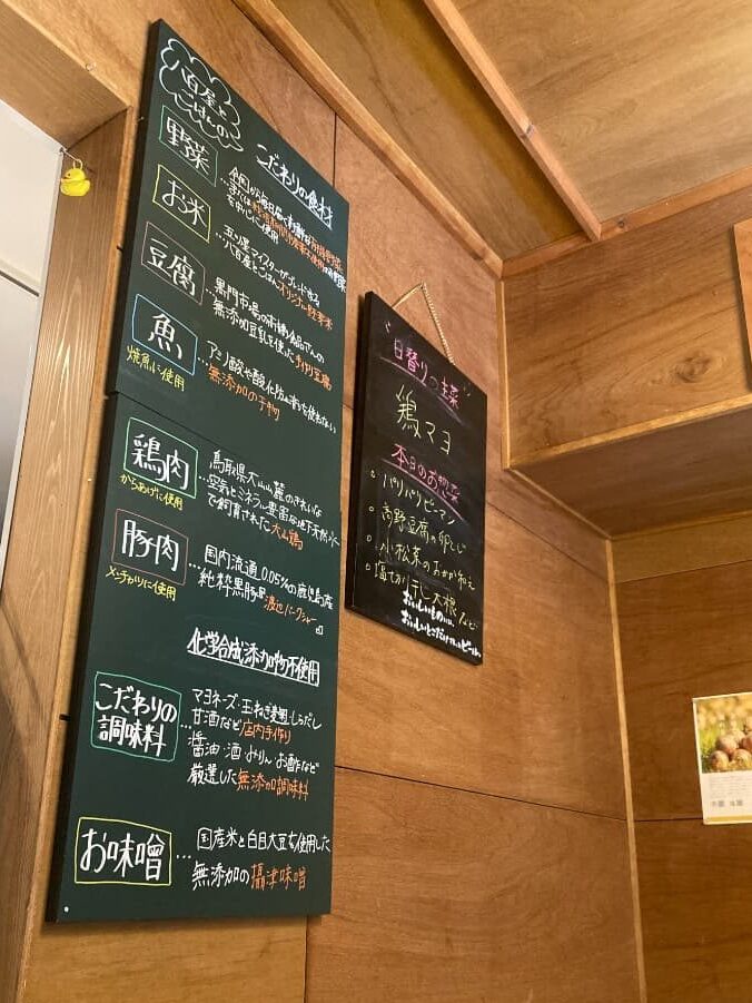 お店に入ると、「いらっしゃいませ~」とお店の温かい空気感と一緒にやさしい声をかけられました😊中の黒板にはこだわりの食材について書かれていたり、メニューに栄養素が書かれていて、とても身体を気遣ったものを作っておられるのだろうなぁと感じました。