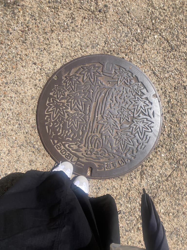 途中で箕面市のマンホールを発見!滝ともみじがとても素敵ですね🍁散歩していてその土地ならではのマンホールを見つけると写真を撮ってしまいます📸