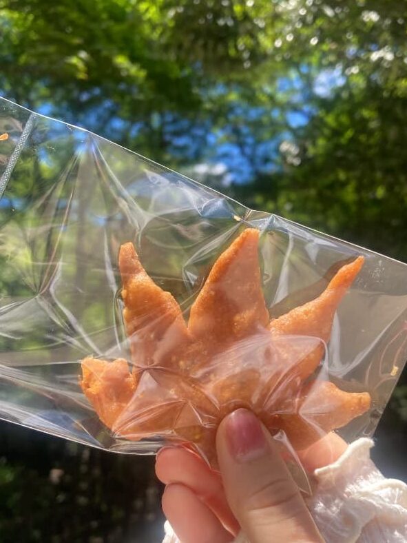 そのあとは、ずっと気になっていたもみじの天ぷらを頂きました。大きいサイズ1枚か小さいサイズ数枚か選べました。私は大きいのにしました。とてもカリカリで、程よい甘さで美味しかったです。