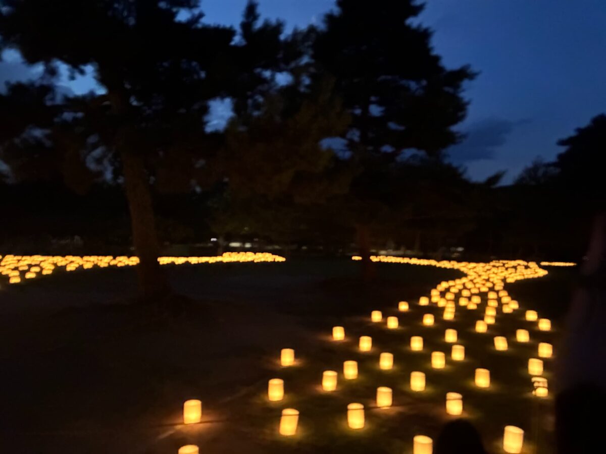 私も写真を撮りましたが、自分の目で見ている目の前のろうそくの花々をそのままの綺麗さで捉えることはむずかしく少し悔しくなりました。それほど綺麗な景色でした。