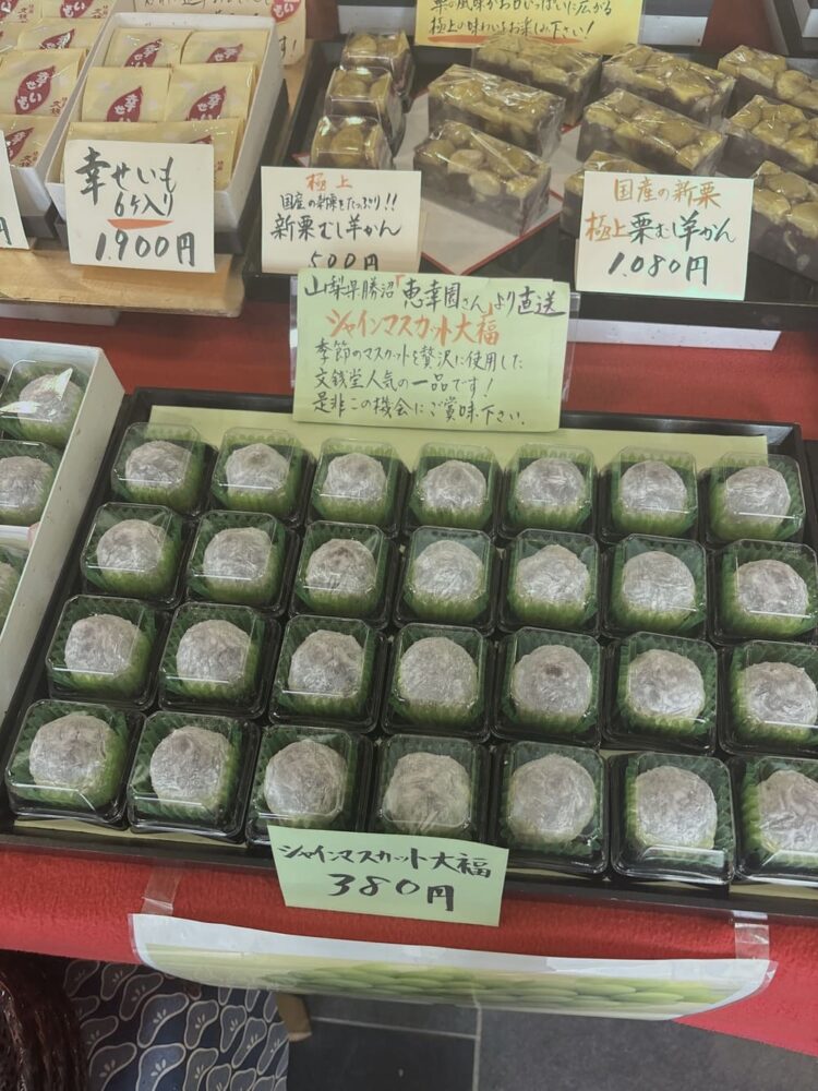 さらに、季節限定の「シャインマスカット大福」(380円)も人気商品とのことで購入。