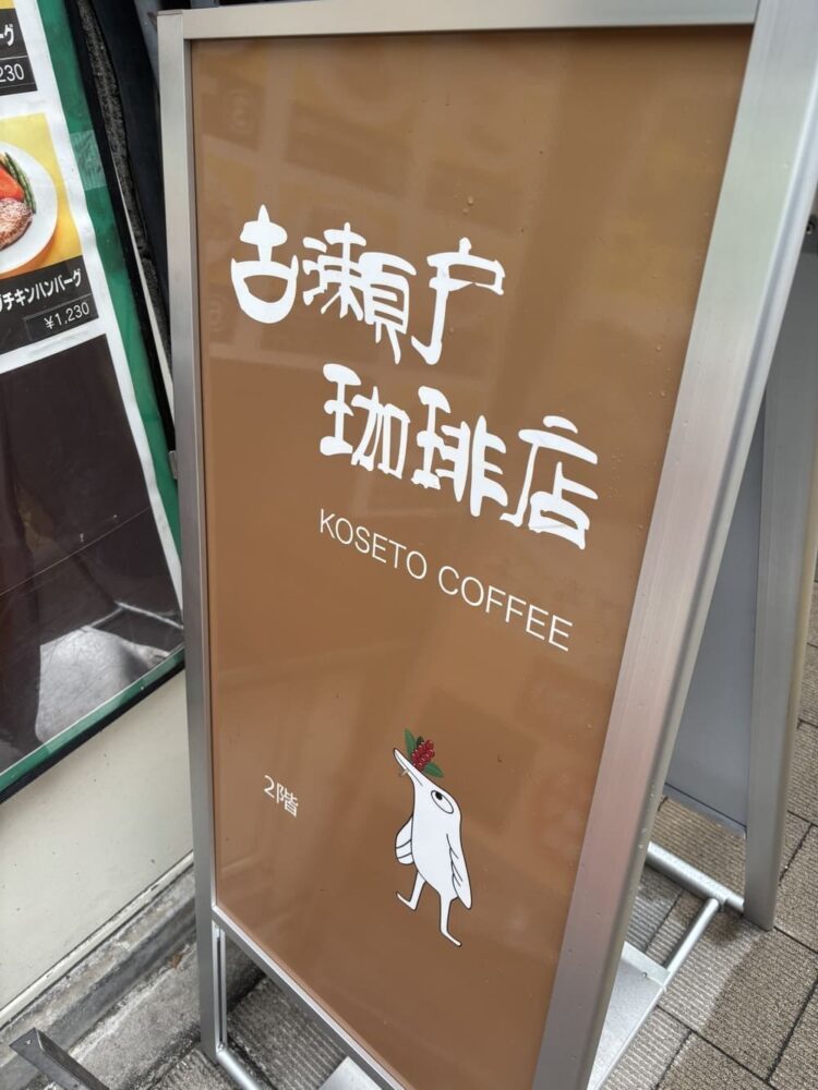 看板を頼りに細い階段を上っていくと、そこに現れるのが「古瀬珈琲店」。