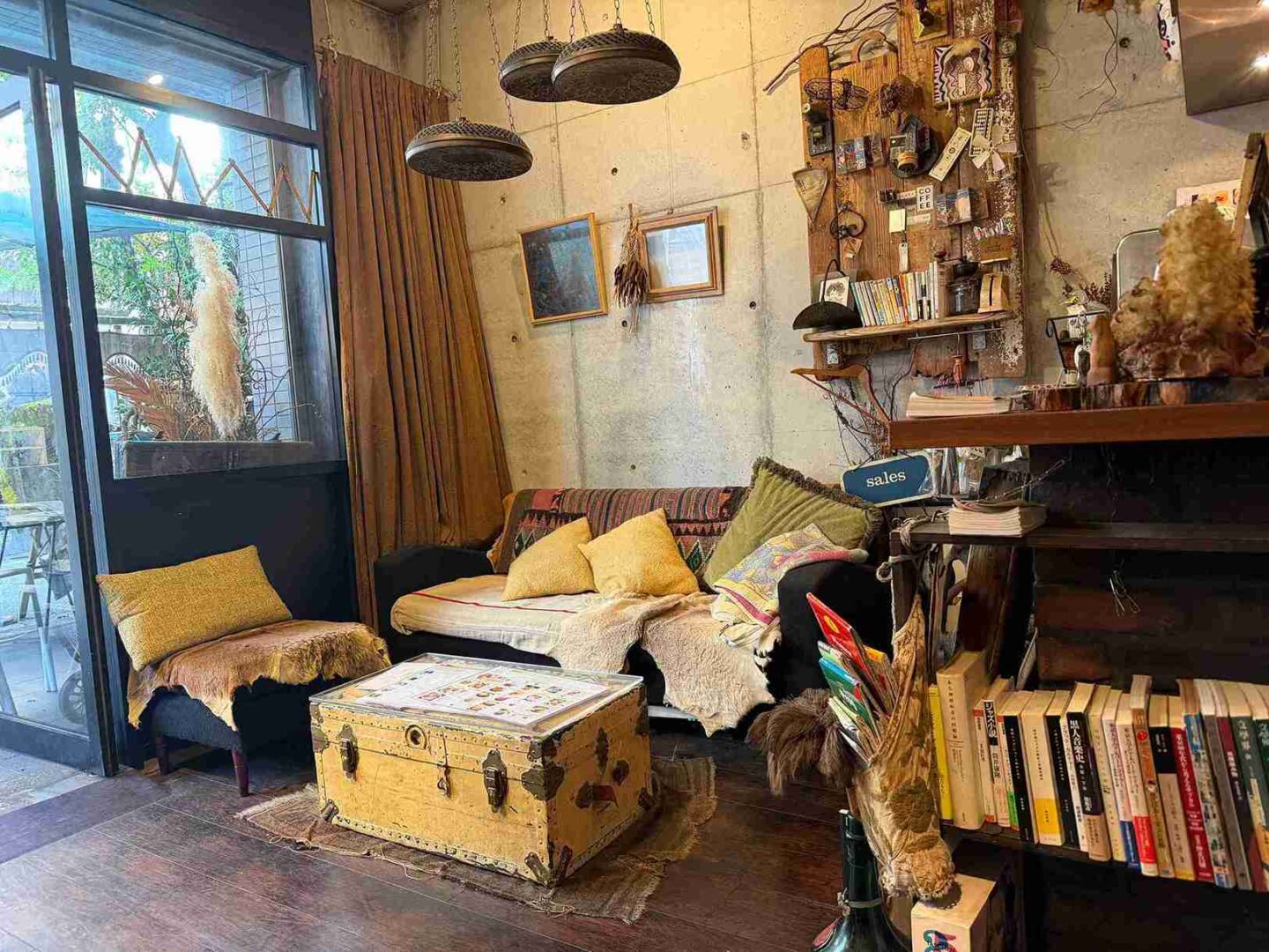 不思議な雑貨や海外の雑誌などが飾られていました。