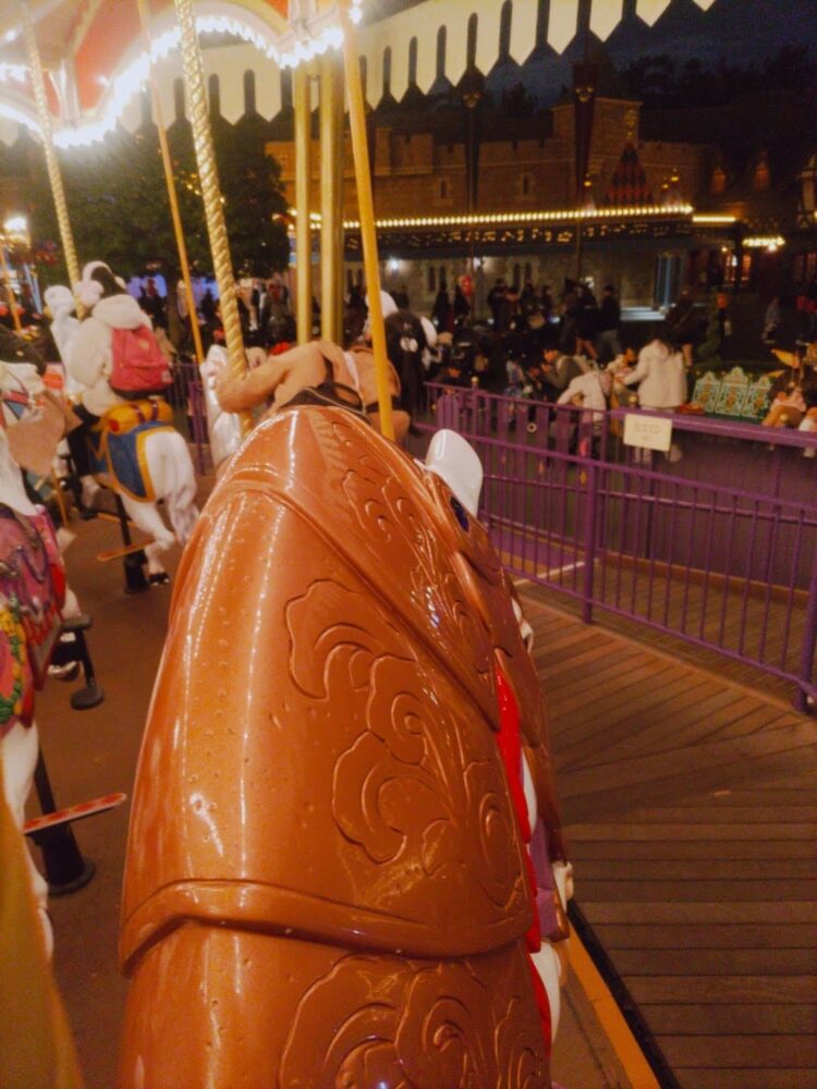 ゆっくり動き出すメリーゴーランド。早いし上下に移動してて楽しいです!