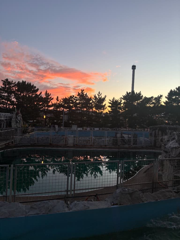 アクアライドⅡ越しのシーパラダイスタワーと夕焼け空🌇💦