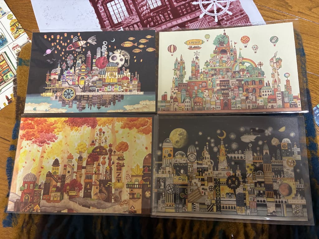 たくさんの種類が並んでいてそれぞれに空想街が描かれていました!