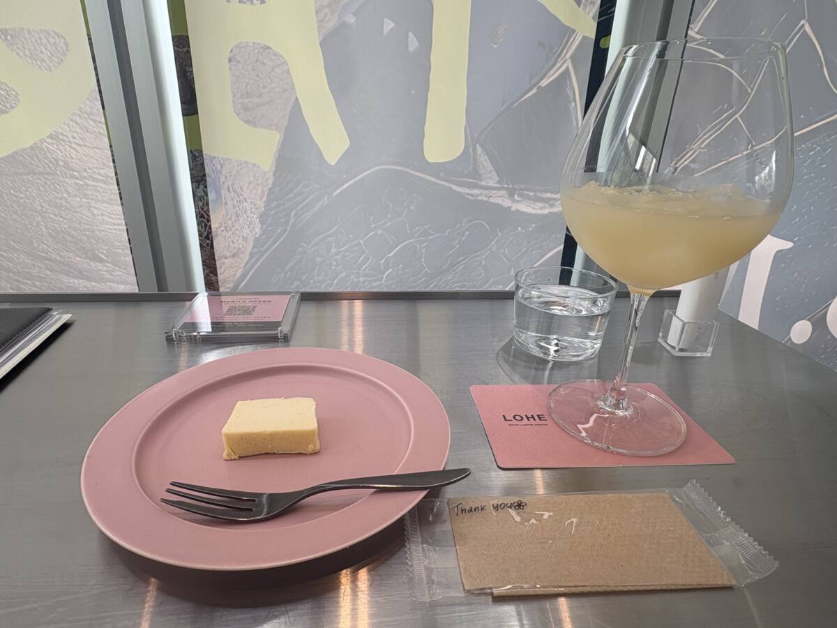 今回たべたのは「バニラチーズケーキ」と「りんごジュース」!まずバニラチーズケーキは、一般的なチーズケーキとは少し異なり、チーズの濃厚さというよりも、たまごのやさしいコクとバニラの香りが際立つ一品です。口に入れた瞬間、ふんわりと広がる甘さと軽やかな食感が特徴で、コーヒーとの相性がすごく良さそうですが単体でも満足感のある味わいでした。見た目もシンプルで可愛らしく、写真映えするのも魅力のひとつです!!