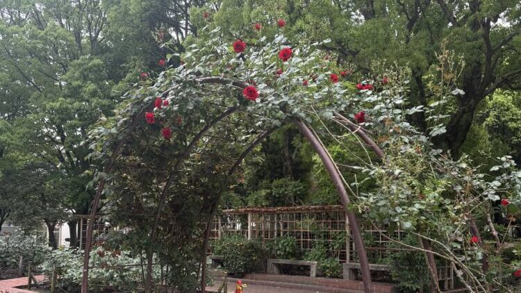 園内は思っていた以上に広く、きれいに整備された遊歩道や芝生エリアがあり、のんびりと過ごすにはぴったりの場所です。季節によってはバラの花や木々の彩りが楽しめるのも魅力で、訪れた日は緑がとても鮮やかで、自然の中でリフレッシュできました。少しだけ赤いバラが咲いていて綺麗でした!ベンチに座ってぼんやりと景色を眺めているだけでも、日々の疲れが少しずつ和らいでいくのを感じます。