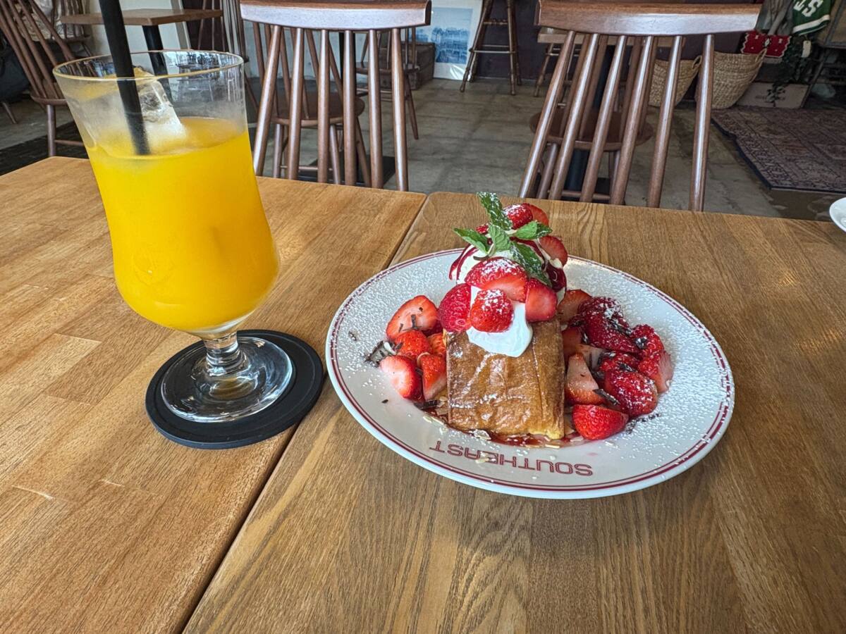兵庫県尼崎市にあるカフェ、SOUTHEASTに行ってきました!店内は木の温もりを感じる落ち着いた雰囲気で、ゆったりとした時間が流れていて、入った瞬間から「ここ当たりかも」と思える空間。おしゃれだけど気取らず、居心地の良さが印象的でした。このお店はずっと前から行きたくて4月末まで苺のフェアをしているみたいだったのでやっと行くことができてすごく嬉しかったです!!