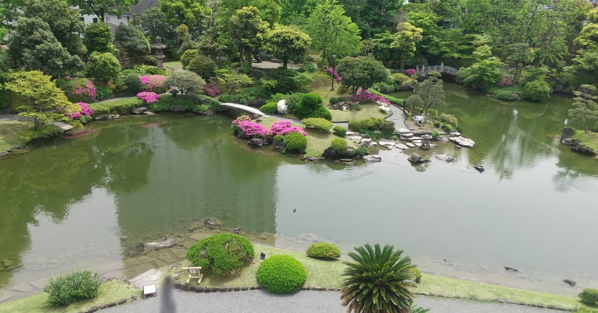 こちらは旧安田庭園…を刀剣博物館の屋上庭園から撮影したものです📷